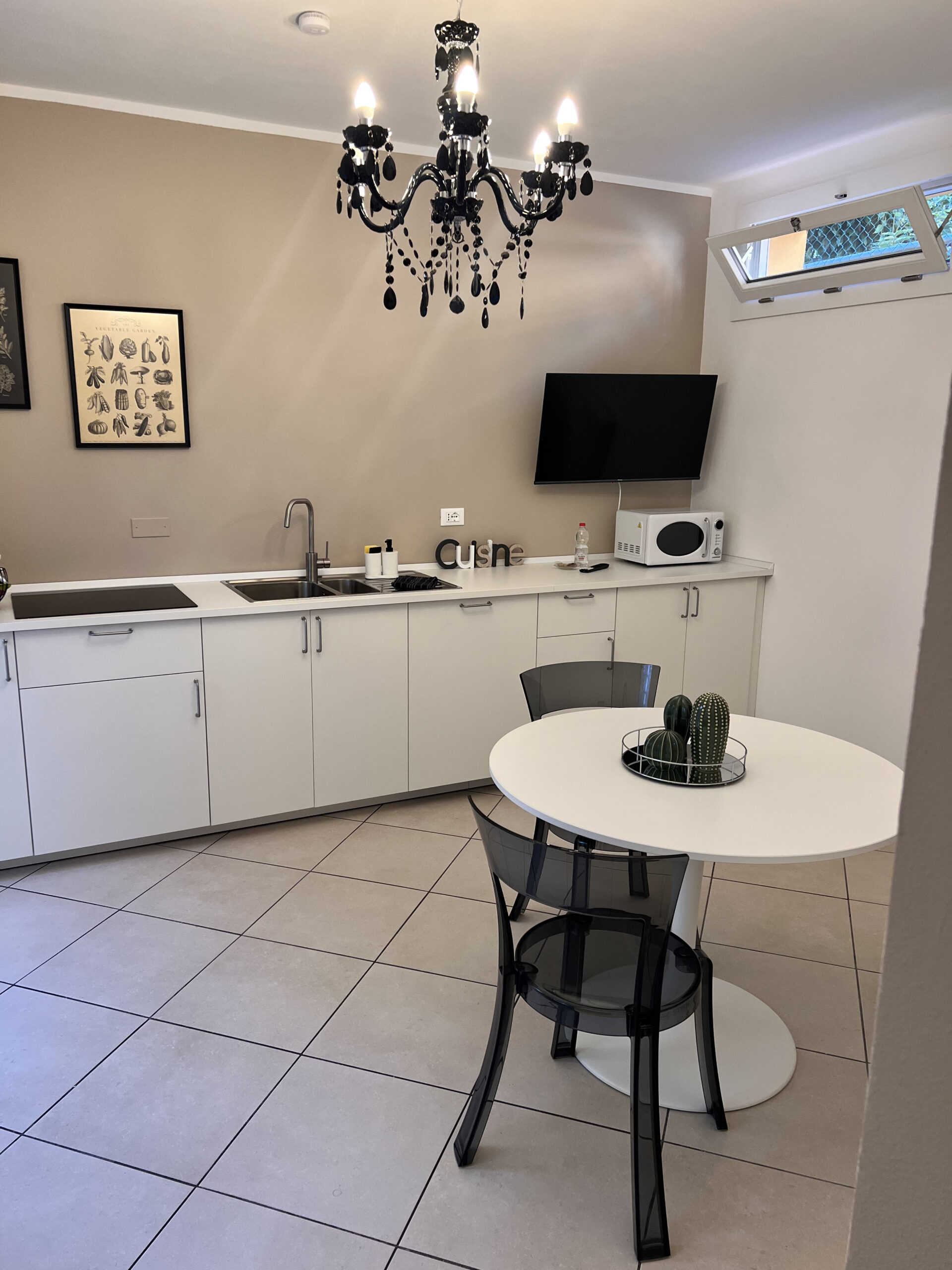 Saragozza Deluxe Apartment dispone di un ampio open space con area living e cucina corredata da tutti gli elettrodomestici necessari per trascorrere un soggiorno nel completo relax, all’insegna del comfort ma anche della funzionalità.